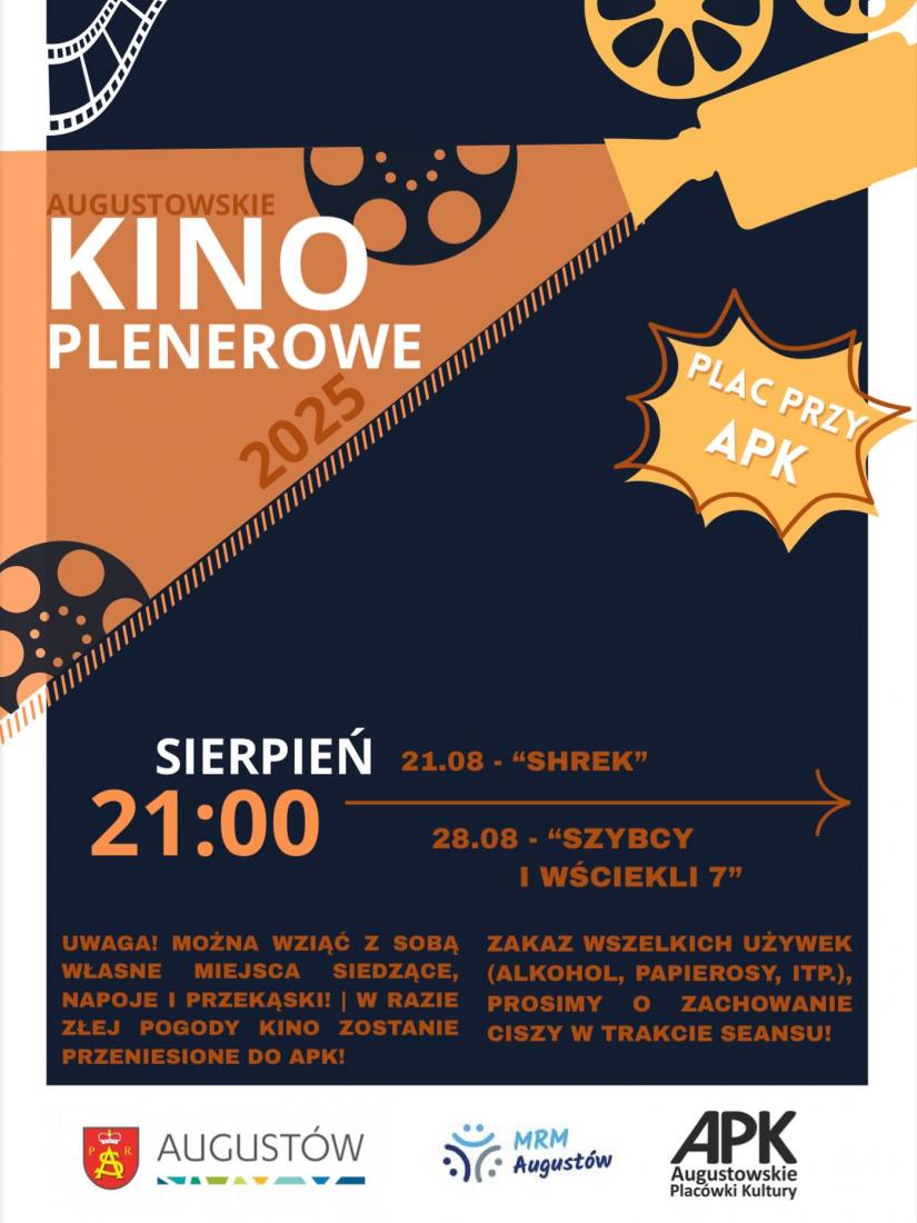 Zapraszamy do Augustowskiego Kina Plenerowego. Projekcje odbędą się na placu przy APK o godzinie 21:00.